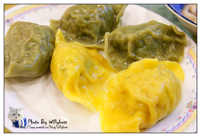 最後當然是壓軸的魔王級眷村大水餃,一顆10元,高麗菜和韭菜還分別是用兩種不同顏色的餃皮包的。