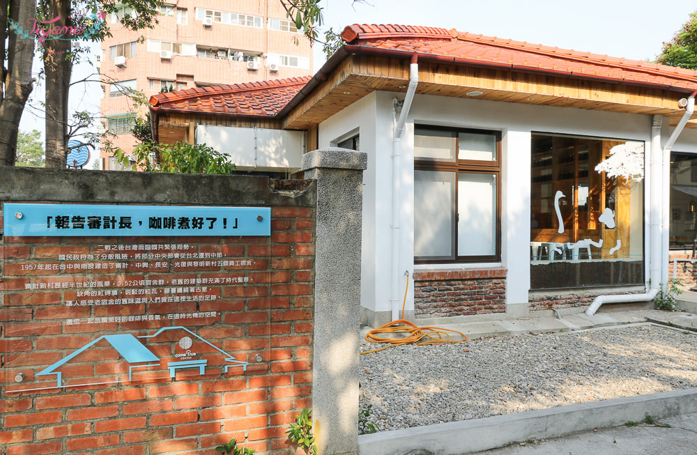 而成真咖啡的位置是當初”審計長的宿舍”也是園區內最大的建築。台中審計店是成真咖啡夢想的第一站,培訓台灣在地青年成為專業烘豆師,期望能用咖啡實現每一個微小的夢想。
