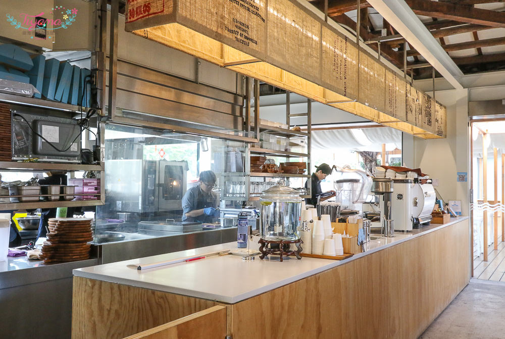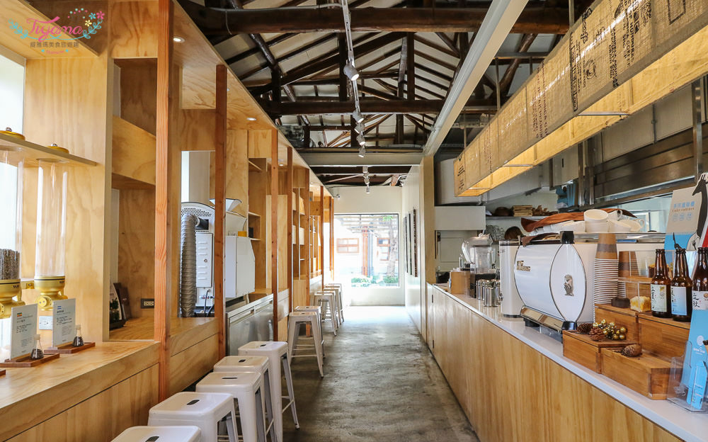 步入店內是窄長型走道,左邊是烘豆體驗,右邊是吧檯廚房工作區,開放式廚房設計,製作餐點過程安心看得見,卻沒任何油煙味。
