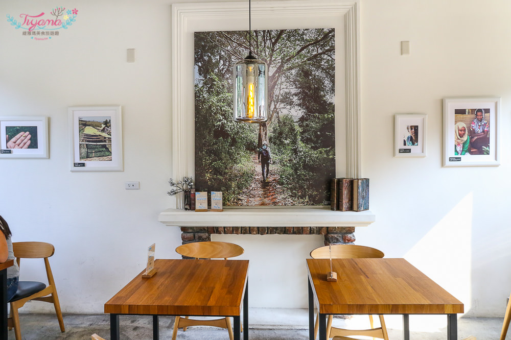純白搭原木厚實桌面,暖洋洋的陽光照射進來,溫暖有質感,從一幅幅非洲產區咖啡人文景色和咖啡豆製作照片裡,能感受到成真咖啡的溫度。