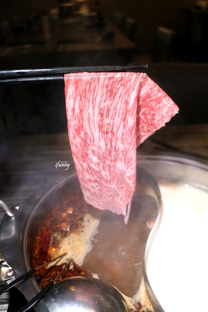 無辣不歡的艾方妮首選了麻辣鍋底,店長有提醒若擔心吃到花椒粒,可先將漂浮的香料都先撈起來。這阿松師的麻辣鍋香、辣、麻都很夠味,辛香卻不嗆口,涮過的牛肉都很夠味。湯底中的豆腐及鴨血表現也很好,可以續加兩次。