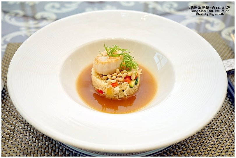 ▼鮑魚汁佐干貝松子燉飯,這一道則是精緻的台菜料理,以法式的手法呈現!