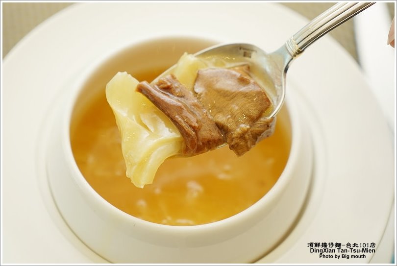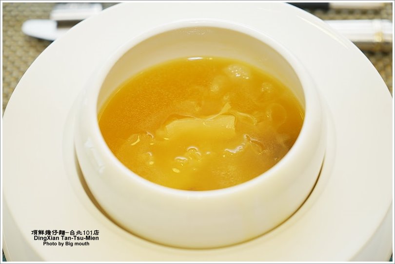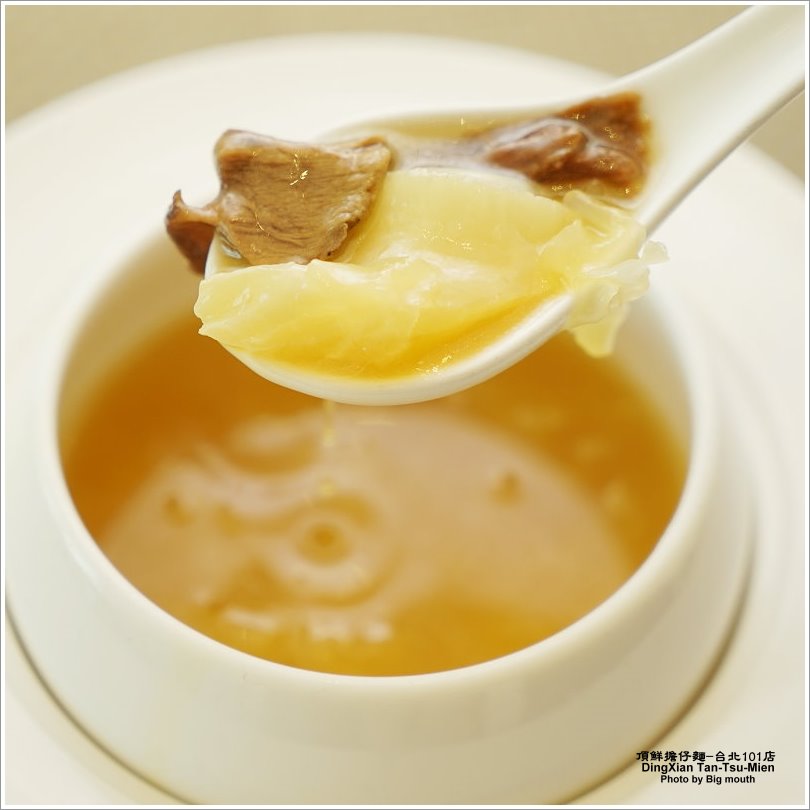 ▼裡頭配料還不少,花膠吃起來香滑Q嫩,幾乎是入口即化的口感,搭配羊肝菌別有一番風味!