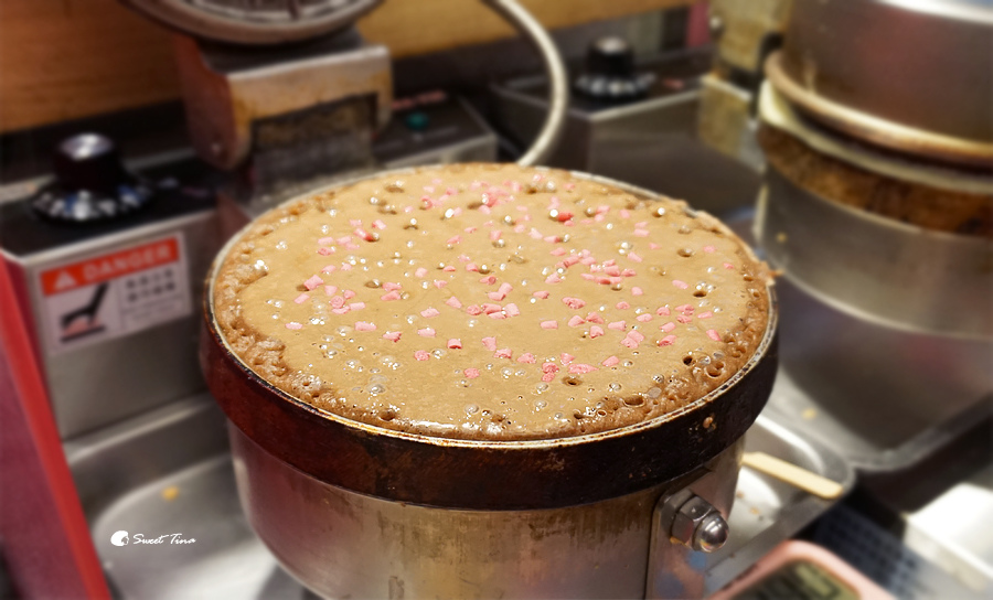 爐子上正在烘烤的是巧克力的鬆餅皮搭上草莓QQ,這邊除了原味的餅皮外,也有抹茶、巧克力、義式香料皮,可以變化不同的風味。