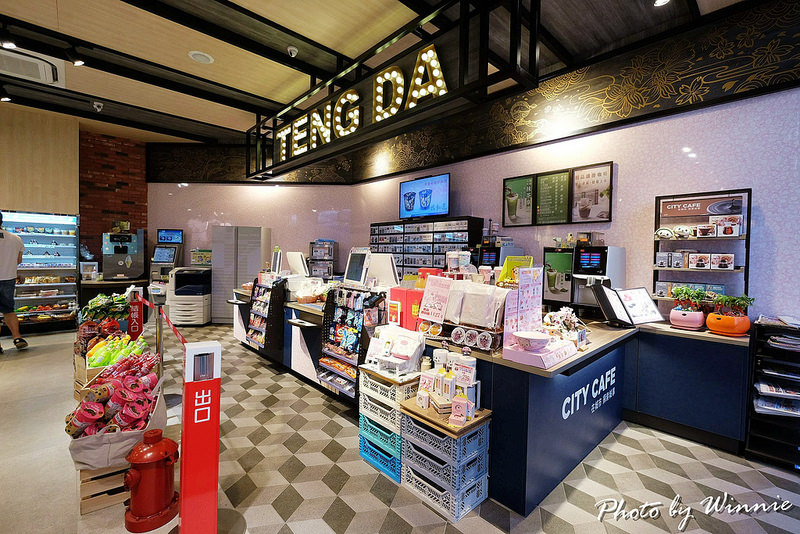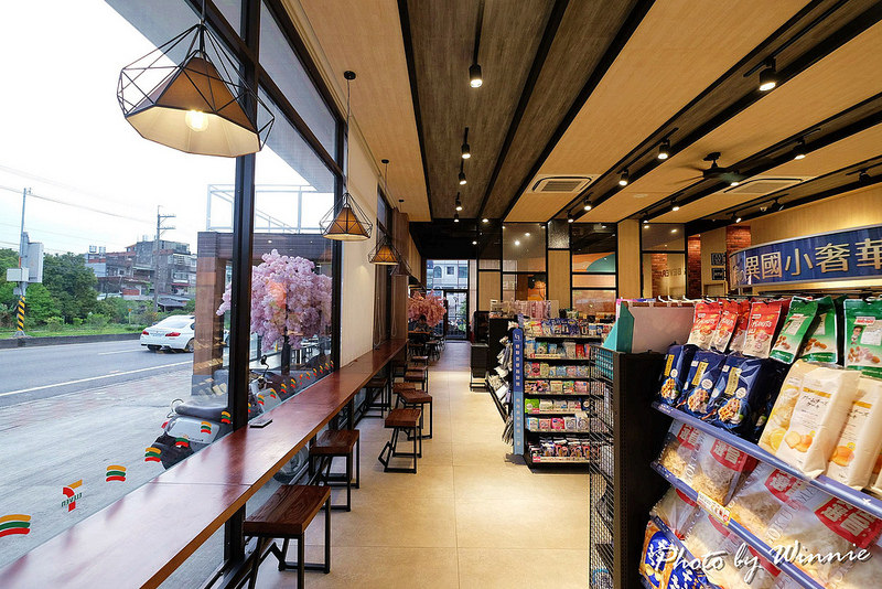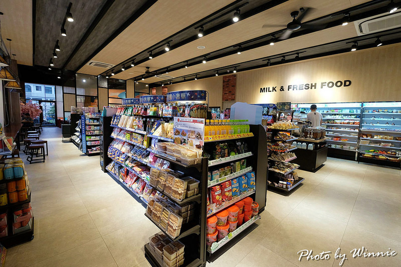 門市的內部與一般的小七風格也有點不太相同,以原木色搭配工業風格為主,還加上了許多英文的分區說明,似乎走的是國際性的路線,哈哈!!