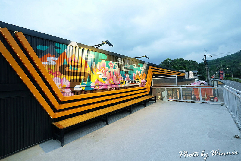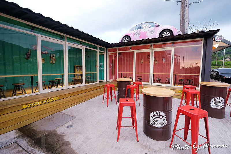 彩色的貨櫃屋不僅是好拍照的背景畫面,同時也是讓遊客可以休憩的用餐空間,貨櫃屋上還放置了一台夢幻粉嫩超吸睛的金龜車,也成功了吸引了不少女性顧客的目光