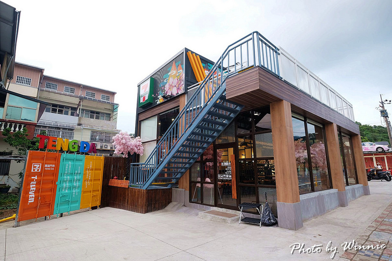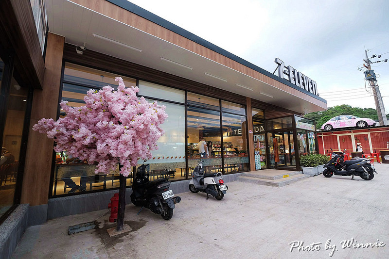 這間小七的位置就在於新竹台三線上通往熱門景點內灣老街的主要幹道上,只要是車經過的人應該都不難發現它超明顯的存在感,從黑白色的LOGO到一旁的彩色貨櫃屋,甚至是許多陪襯的假櫻花樹,都把這間騰達門市裝點的宛如就像是個迷你的攝影棚般,不管是想怎麼拍照、拍多久都不會有人跟你收費,超佛心來著