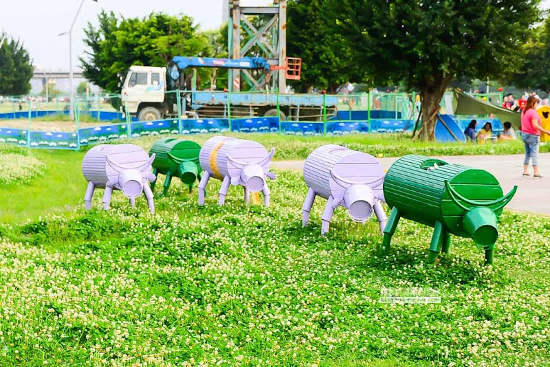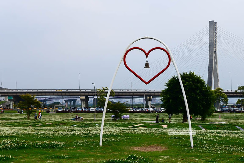除了幸運草地景溜滑梯這一區,還有很多地景的設計可以去逛逛,比方像框住情人、健康鐘聲、河岸鐘樓、水漾鋼琴、雙心石滬、幸福鐘森、幸福水漾公園等,有興趣的朋友最好騎個腳踏車逛起來會比較輕鬆點。