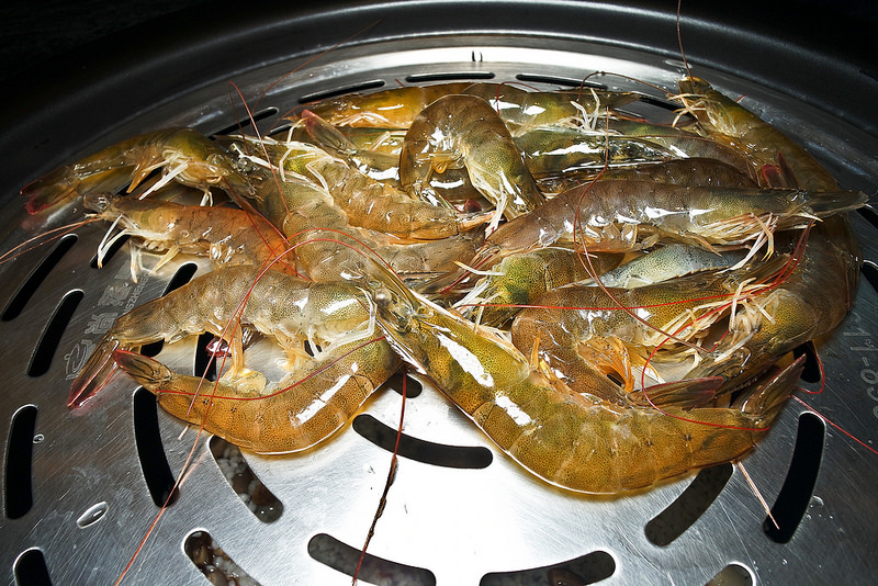 之前吃過活跳跳的蝦, 還真的活跳跳, 怎會有蝦乖乖讓你蒸了牠? 所以還容易弄髒衣服