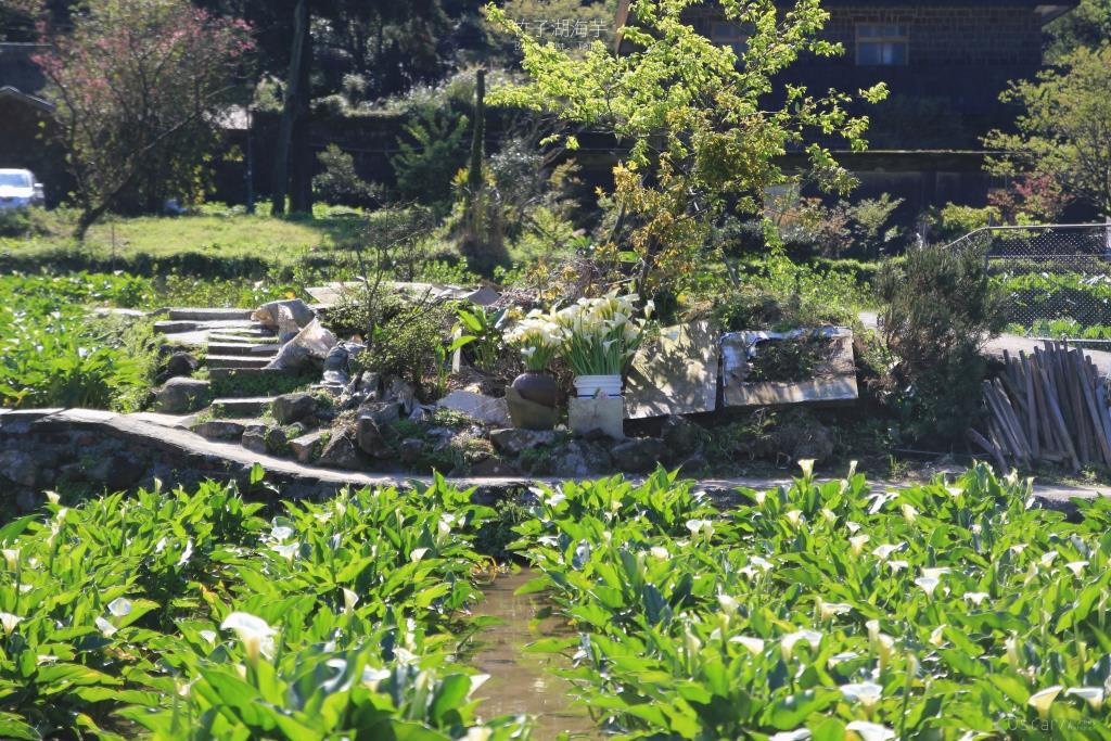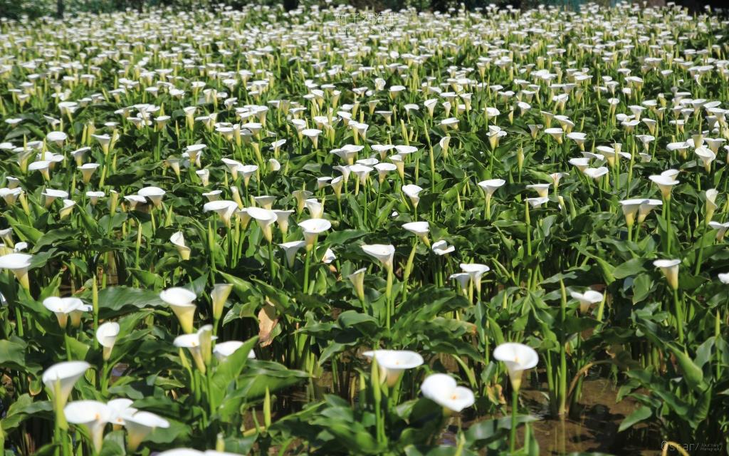 步道兩旁的海芋田 盛開著朵朵潔白 如同白雪一般 輕輕地降臨在這阡陌縱橫的海芋田間