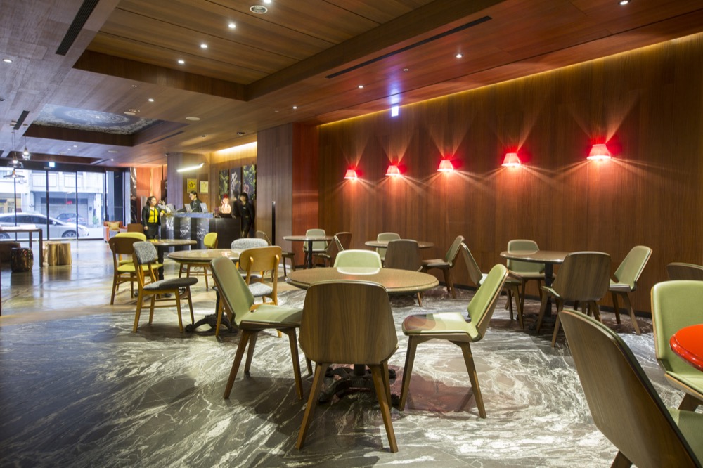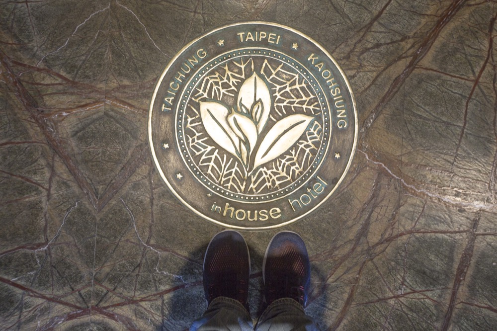 一進門的LOGO是桂花圖騰,從地板到牆面都採用大理石,桂花圖騰可以看見分別位於台中、台北、高雄三間酒店!
