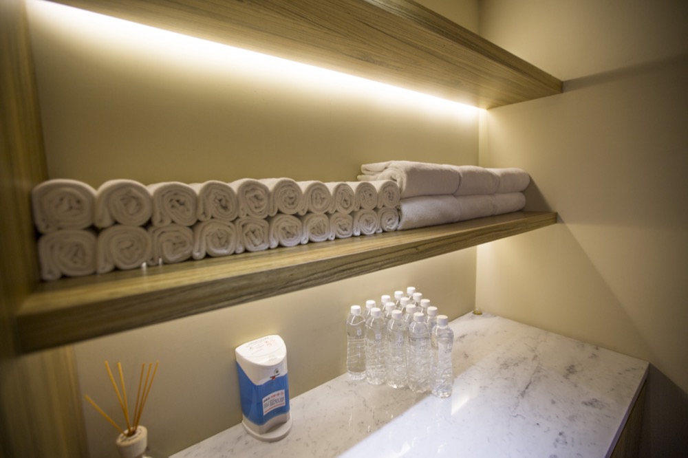 一旁櫃子貼心的準備了瓶裝水以及毛巾可以使用!!