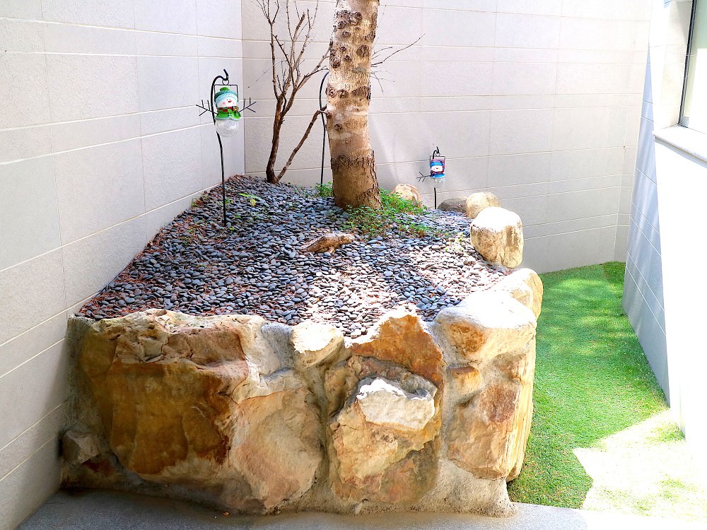 這間房間裡有個小陽台,小小的庭園,裝飾了綠色假草皮,看起來一片綠意盎然,很紓壓!