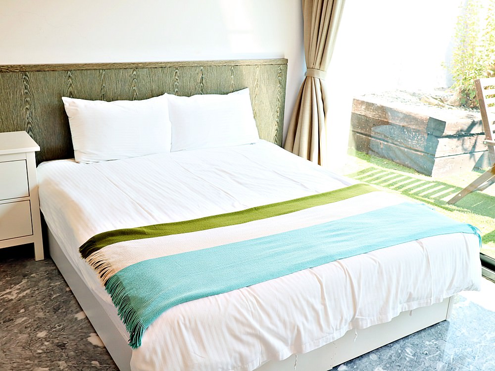 舒適的純白床鋪,搭配溫暖的木作,整體充滿了鄉村風氛圍~