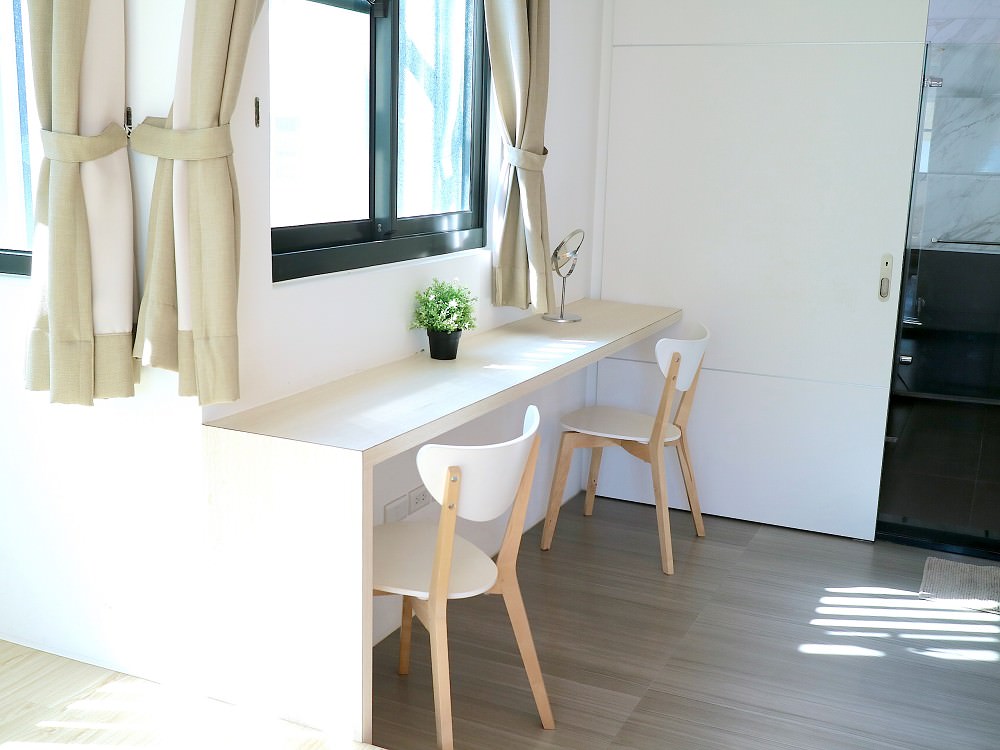 此房間提供了一辦公長桌,桌子下方就有電源,非常適合商務人士 或 外出時還需電腦辦公 的人。