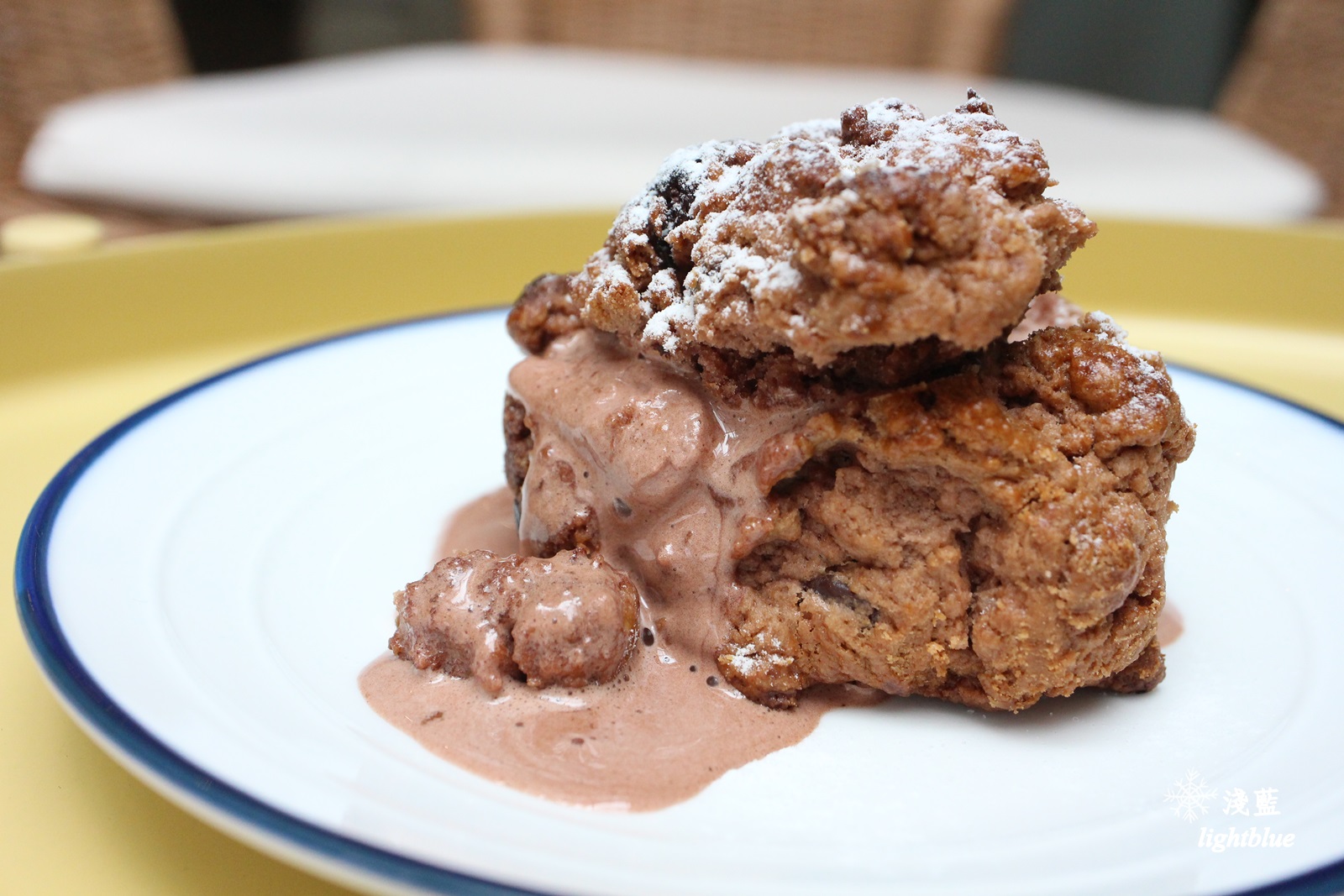 放鬆夾心黑巧克,餐點加購價是85元。放鬆系列都會比較大顆一點,而且有這種熔岩的畫面。好像是第一次吃到他們家巧克力司康,其實也是因為當天沒有抹茶口味啦,不過我