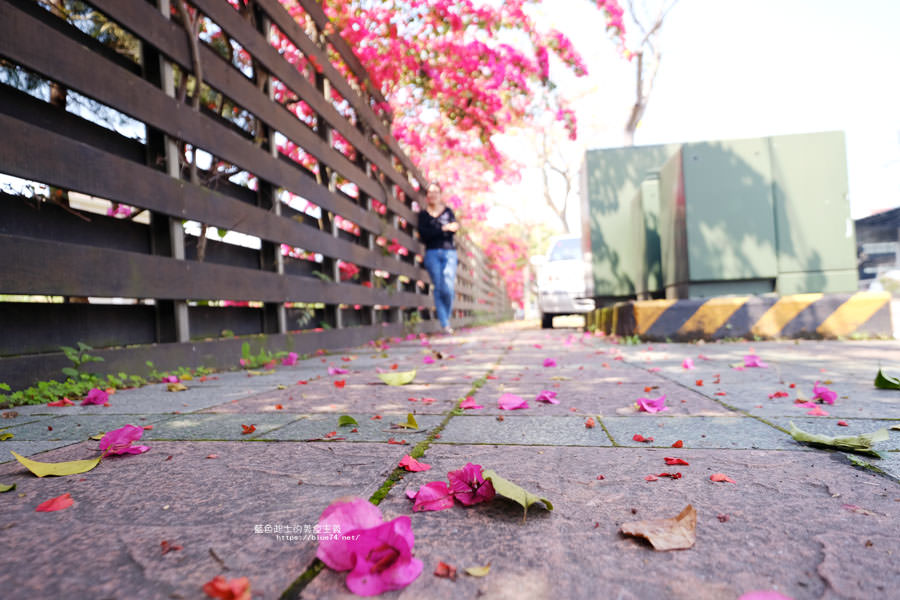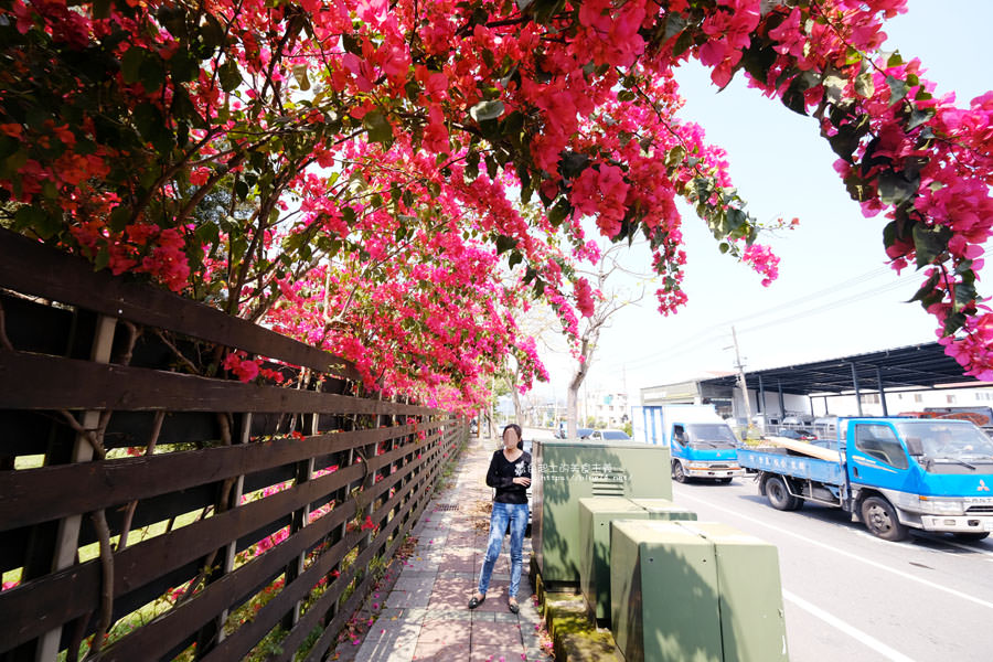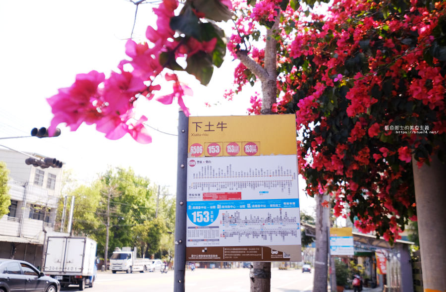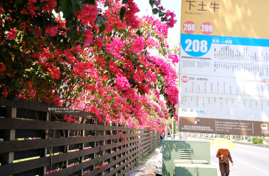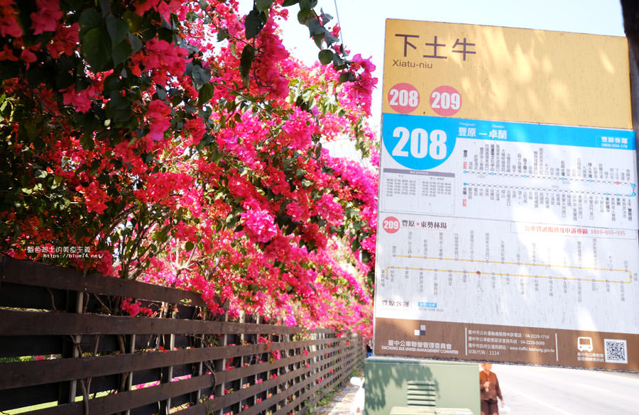 整片花牆超唯美的下土牛公車站,鮮豔搶眼、桃紅一片~