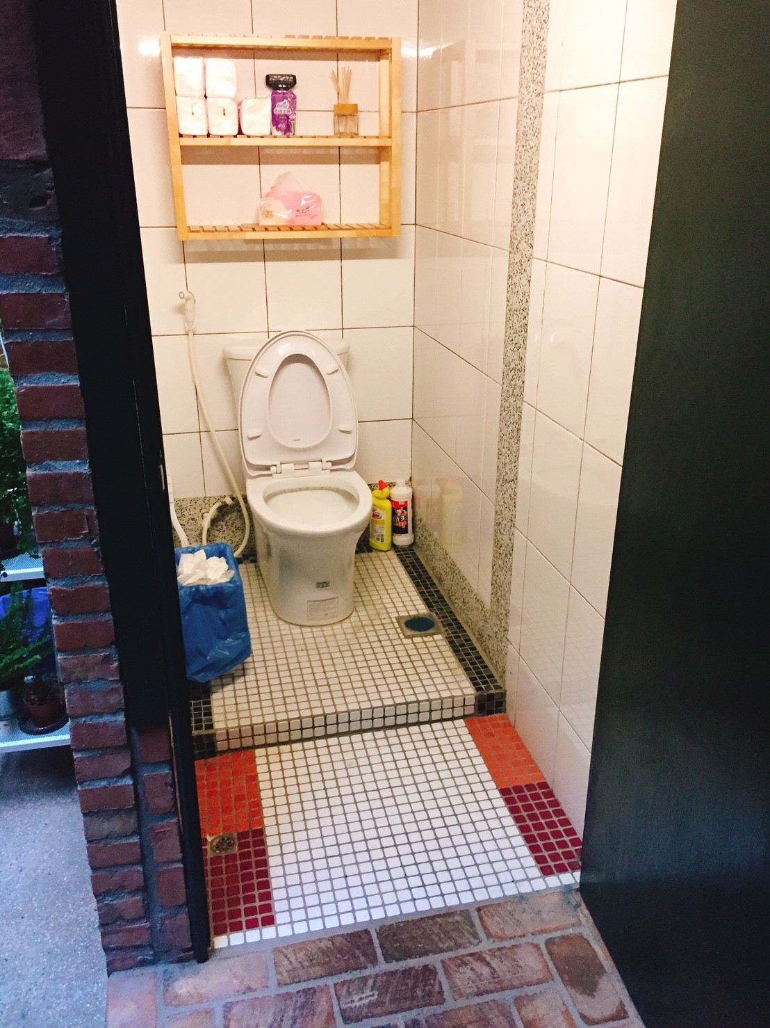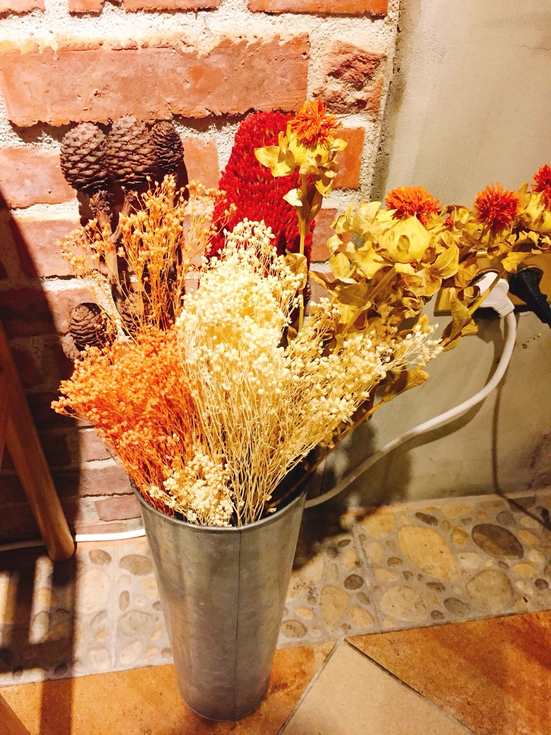 老宅的紅磚牆面掛上網美必備的乾燥花👇,就可以知道好拍的理由了