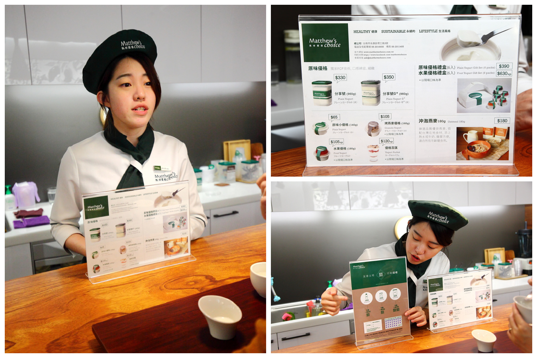 後方則是優格體驗區,來到馬修嚴選門市,如果對於商品有任何疑惑,店員們都會主動講解,還提供試吃的服務唷