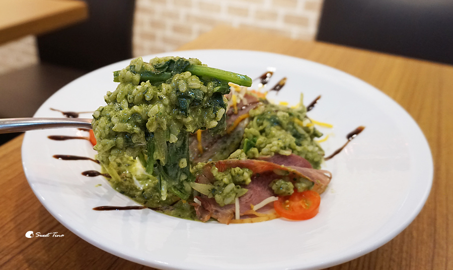 羅勒菠菜鴨胸燉飯- 超喜歡這兒的餐點擺盤耶,看起來色香味俱全,很能吸引食慾。
