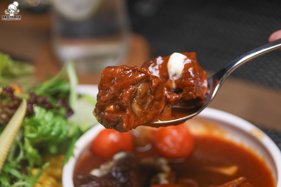使用的是美國牛條肉搭上紅酒燉煮,夠味好吃唷~非常的開胃!