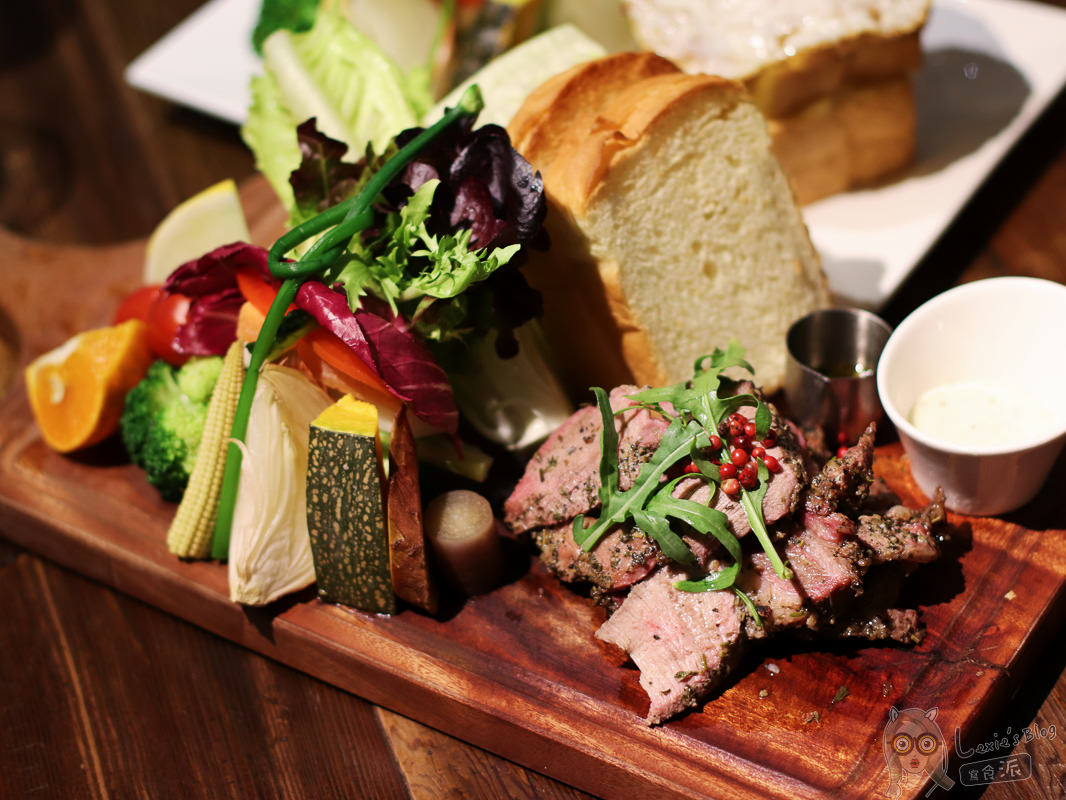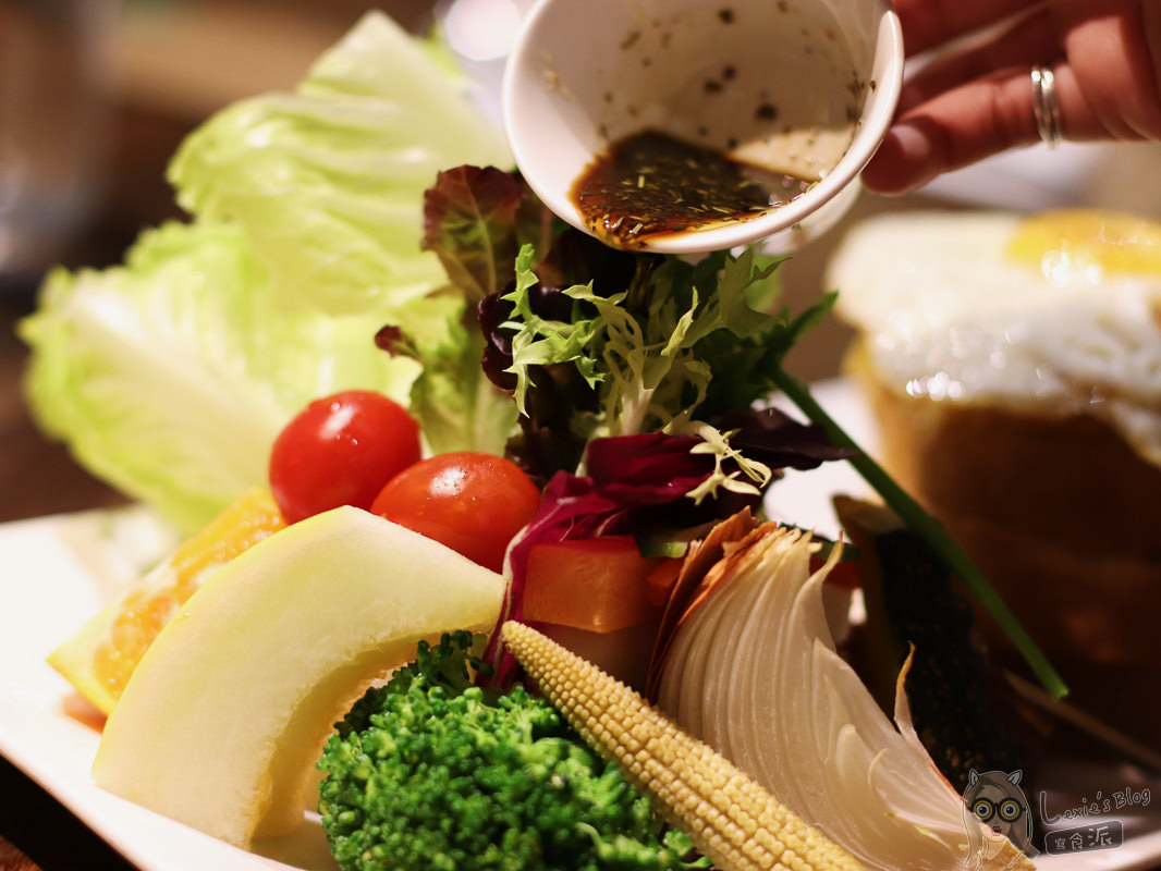 餐點上桌還是嚇了一跳。份量真的很大。一個女生要把所有的蔬菜吃完並不是很容易 ,這餐其實有點硬啊。