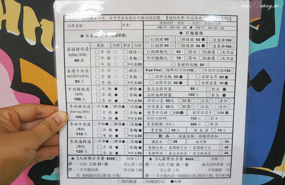 在台中北屯有家泰國料理名為泰小葉泰式風味小食,屬於平價泰國料理小吃店,免收服務費,