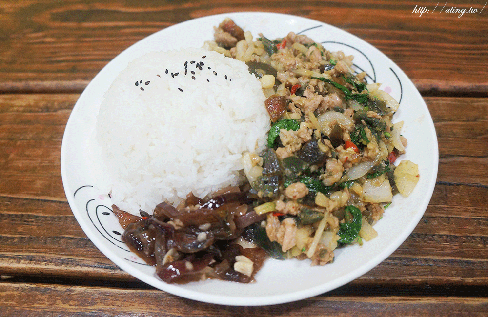 一旁白飯泰小葉使用是泰國香米,蔬菜則有放上涼拌木耳,涼拌木耳帶點微酸滿開胃。