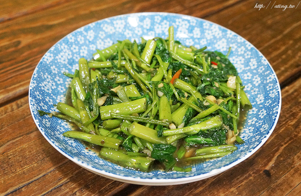 空心菜料理方式可選蝦醬、清炒、豆乳,我選泰式口味蝦醬。