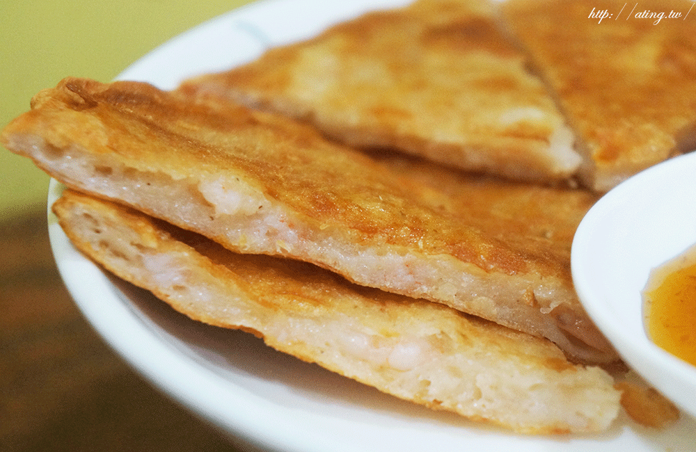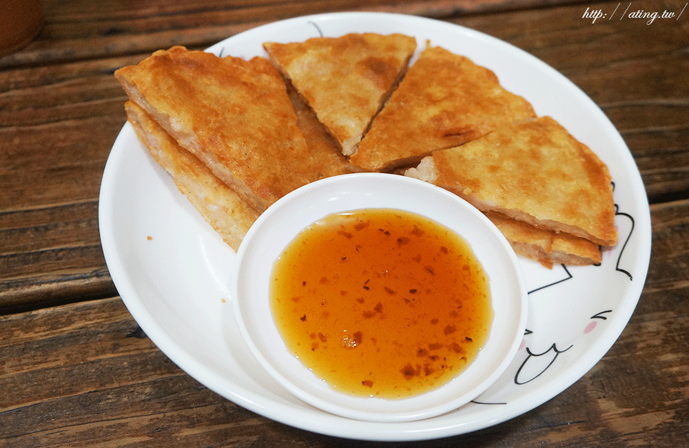 泰國料理一般人氣料理「月亮蝦餅」,餅皮不會過厚也不會過油、吃的到蝦餡,搭配特殊甜辣醬。