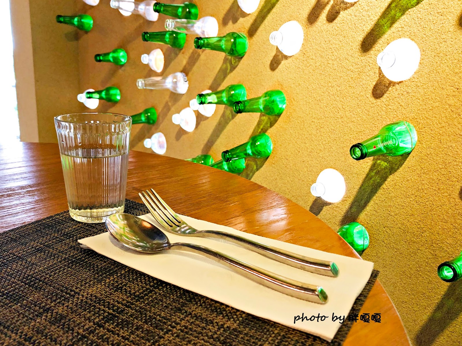 最吸引胖的就是這面使用玻璃瓶鑲入的牆面