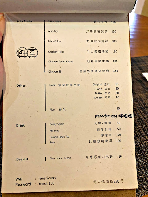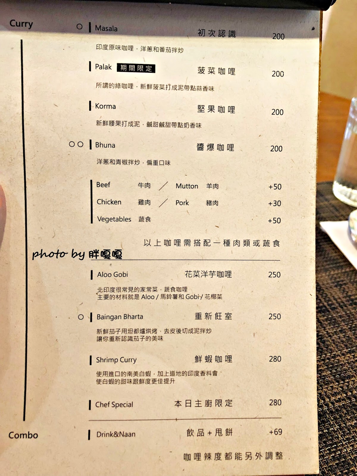 本日主廚限定咖哩 $280 +69搭配甩餅及飲品