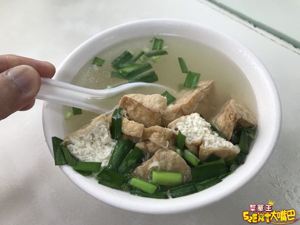 湯頭清徹、上頭撒了滿滿的韭菜、蔥段以提昇整體的香氣!