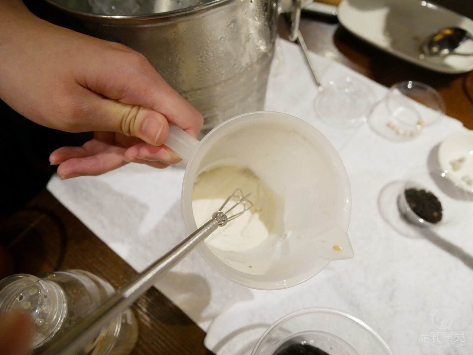 接著使用小量杯裝蔗糖