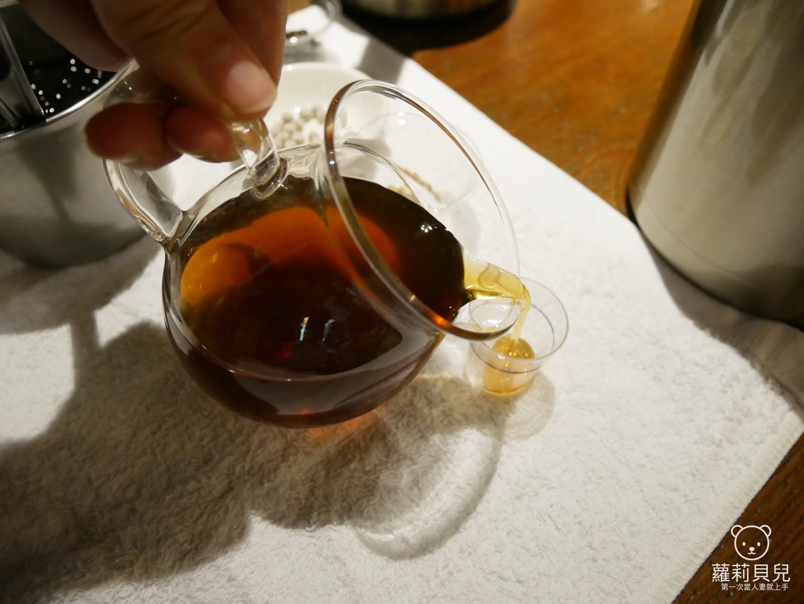首先先將熱茶倒入量杯