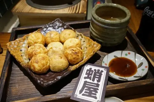 店名蛸屋,蛸音ㄒㄧㄠ,是章魚的古稱,指的就是章魚專賣店啦!