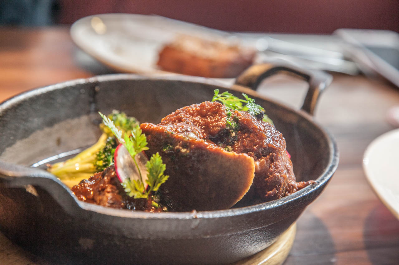 燉牛膝帶著濃烈紅酒果酸及洋蔥的甜香,肉質軟嫩度恰到好處,入口能感受到牛膝豐厚的膠質,牛膝的膠質也滲入醬汁之中,超想拿來沾法國麵包的