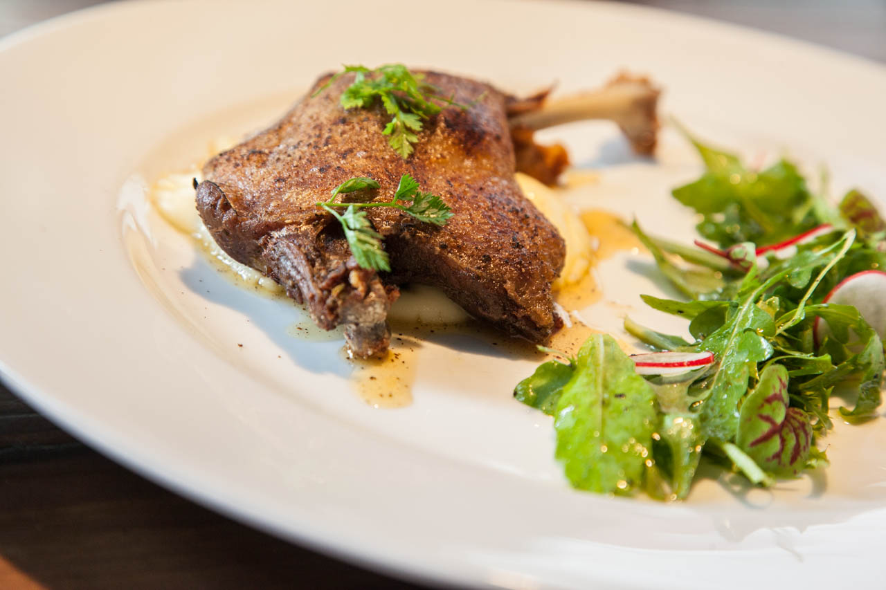 切下鴨肉,刀尖傳來不可思議的柔嫩感,幾乎不用費力鴨腿肉便骨肉分離