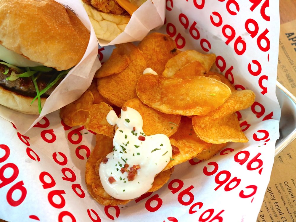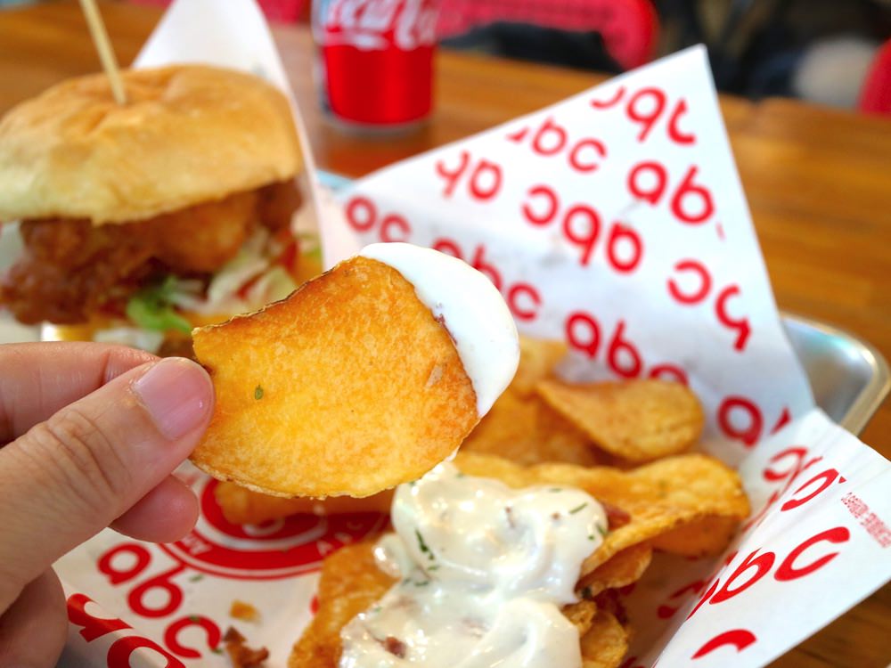 薯片上方,店家特別招待了些自製的『藍起司酸奶醬』。
