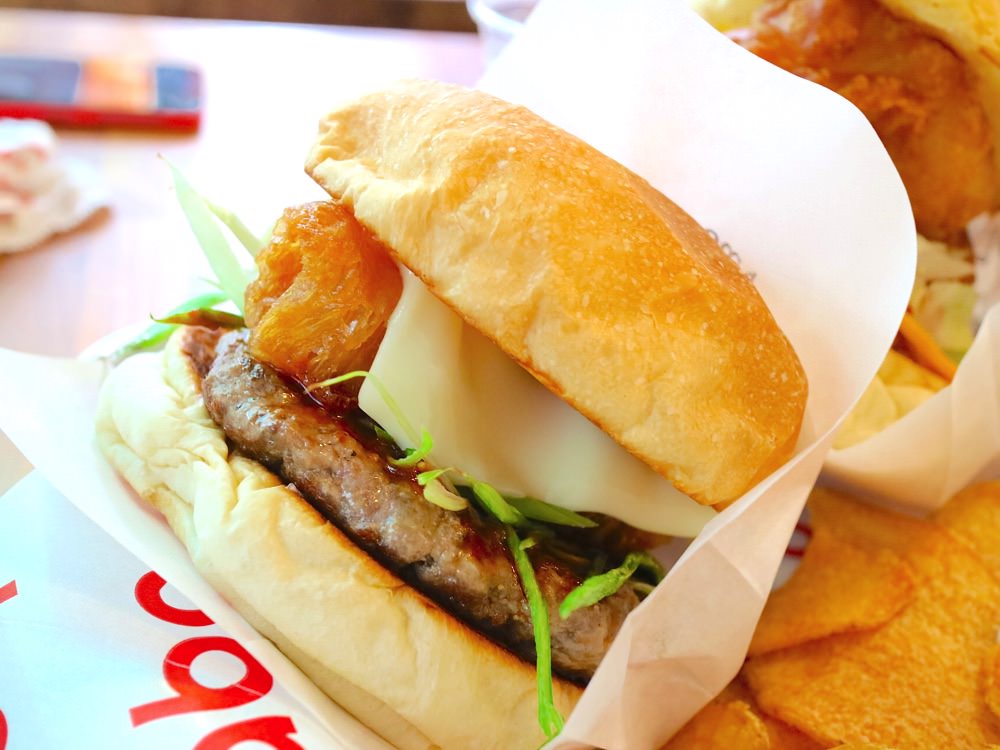 除了手打牛肉漢堡外,竟然還有油條和細蔥!