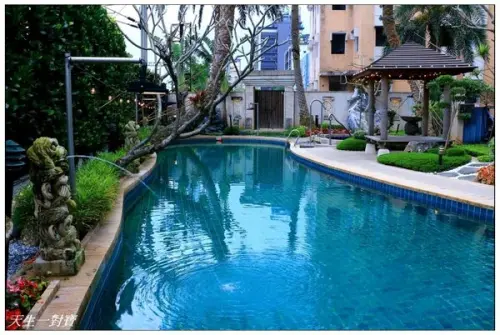 接著我們來看看麗翔酒店內的設施,有個大型溫泉游泳池,整個泳池區很有巴里島南洋風格,在這個地方拍幾張照還可以呼攏朋友到國外度假呢(笑)