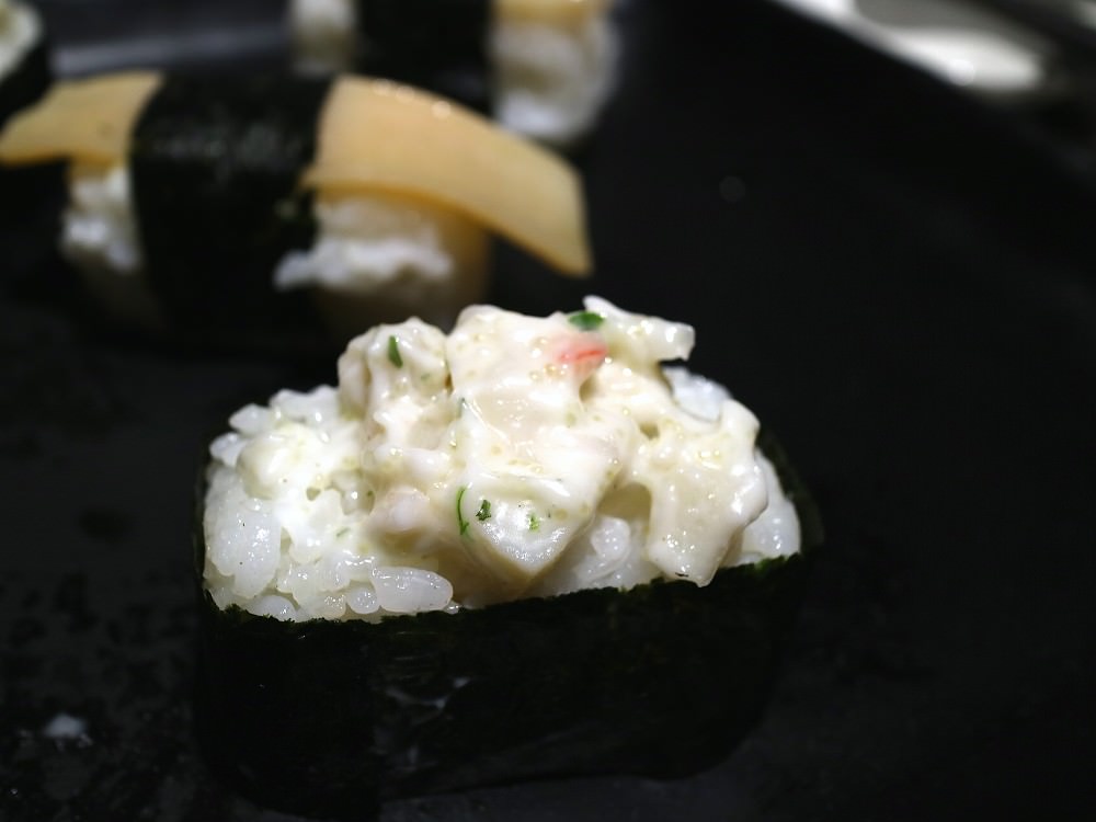 壽司的醋飯,調和的剛剛好,酸甜適中。壽司的捏製鬆緊度剛剛好,不會覺得太緊硬,也不會覺得太鬆散~所以我媽一口氣吃了四顆壽司!