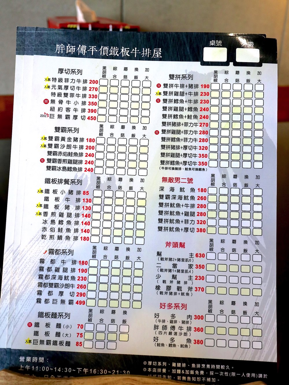【胖師傅平價鐵板牛排】位在新市區中正路馬路旁,對面就是加油站。