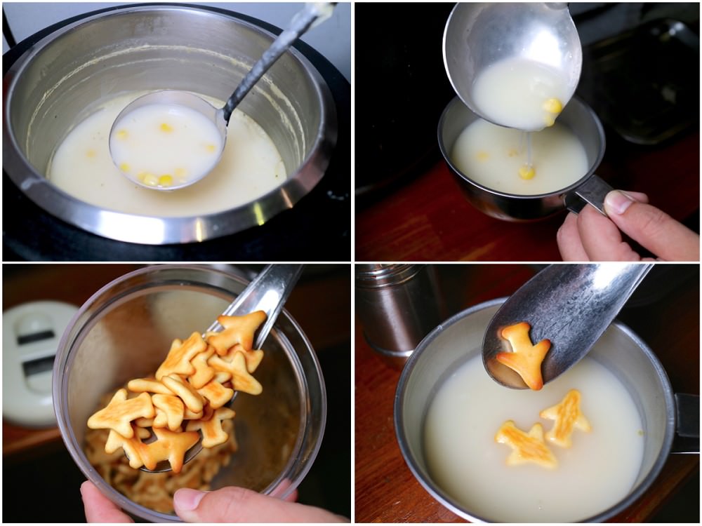 小飛機餅乾,加到濃湯裡,鹹甜鹹甜,嘛沒麥~
