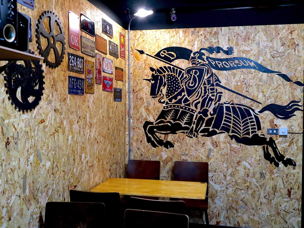 牆面有著地圖&大幅騎士策馬圖,有點酷!