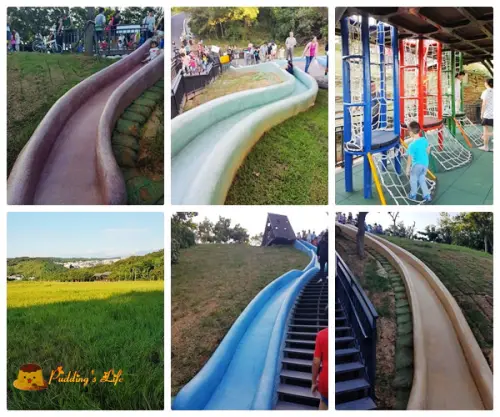 新北市特色公園 ▶ 板橋富貴綠地公園 ▶ 超萌小小兵造型溜滑梯・攀爬網・搖搖馬・人造草皮滑草場~翻滾吧!孩子!