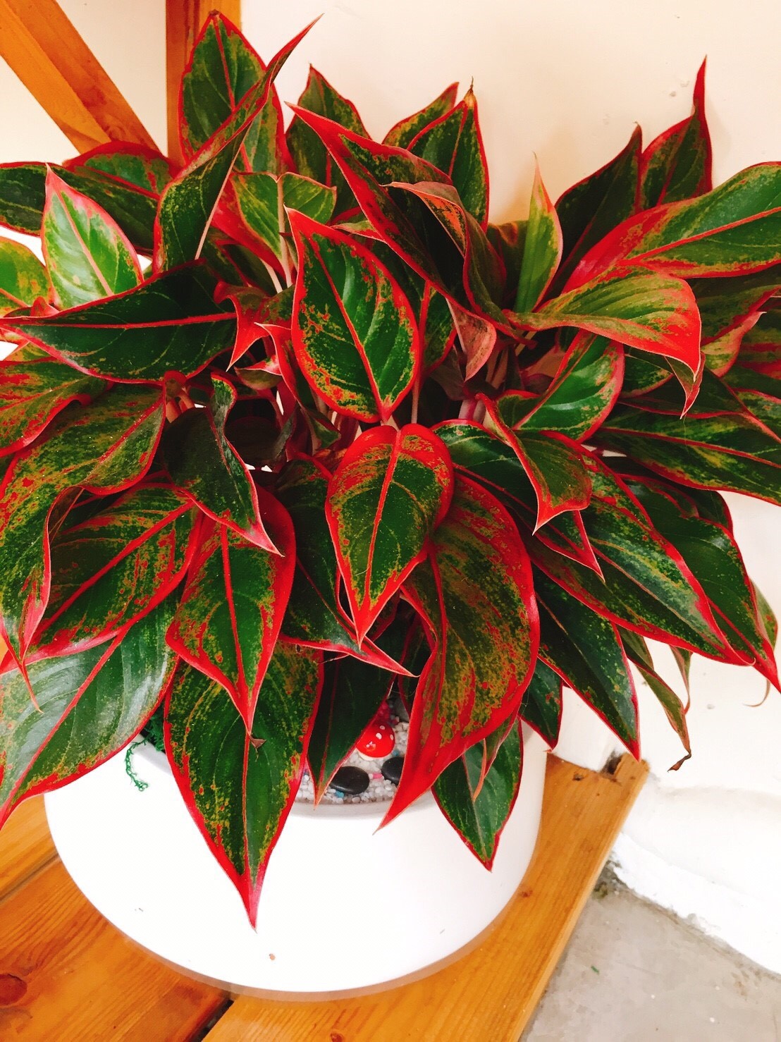 小學生的木頭椅,簡單放個鳳梨也很有特色