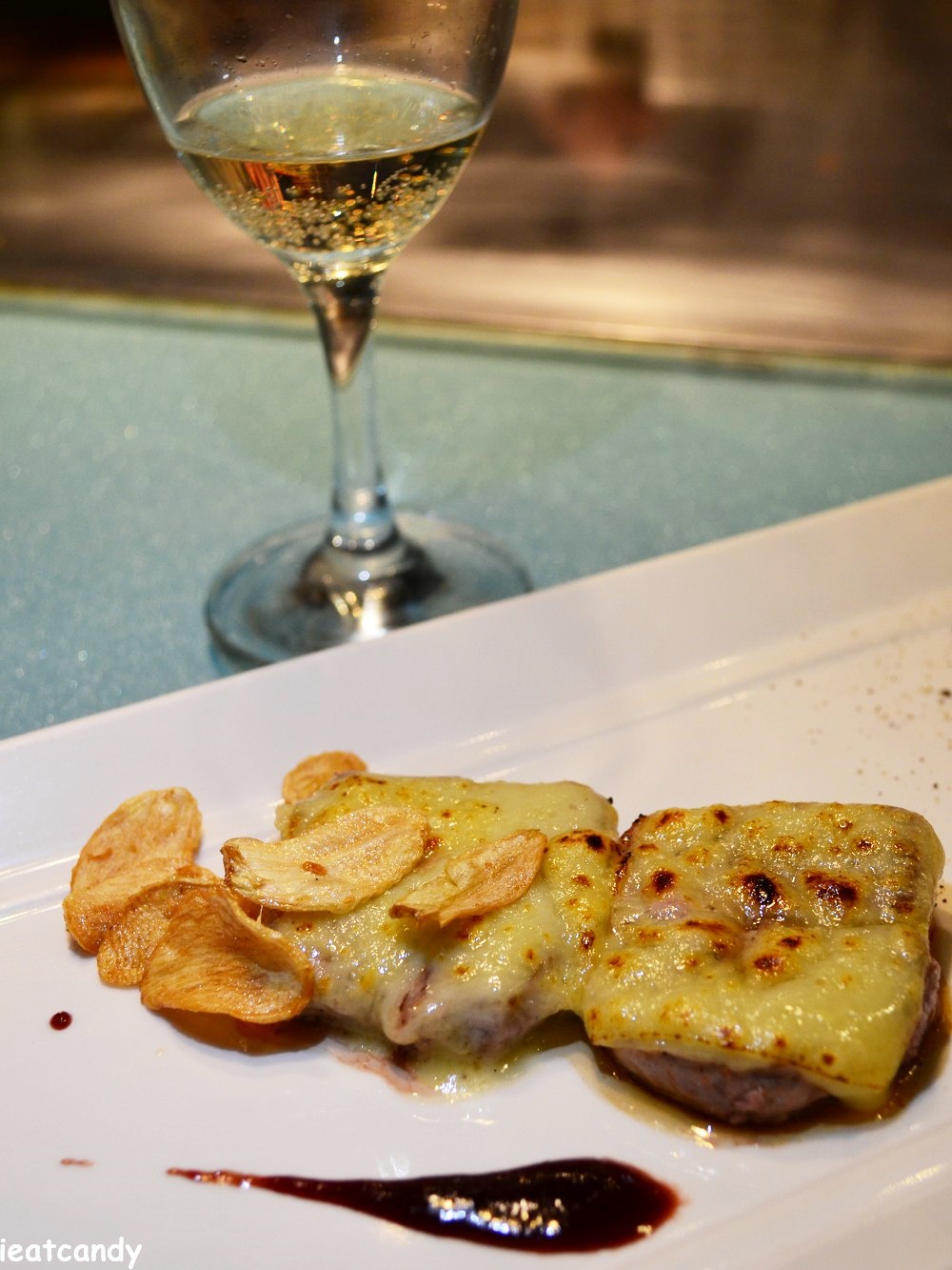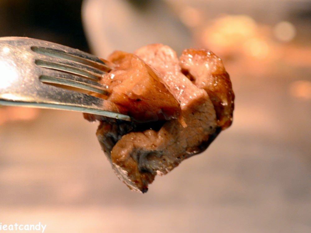 鹹香濃郁的起司搭配部位也不錯的里肌肉,口感較有嚼勁,一口豬肉、一口氣泡飲,整個好滿足啊~(扭)