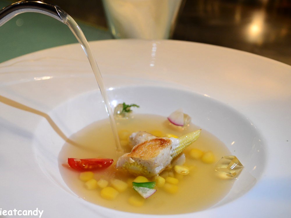 香煎雞肉清湯,這款喝起來味道是三者中偏清淡的,湯頭依然有著甜味,入喉盡是滿滿玉米香氣,將煎過的雞肉包住玉米筍,口感特別,看似簡單,帶給我的更多是令人熟悉的味道。