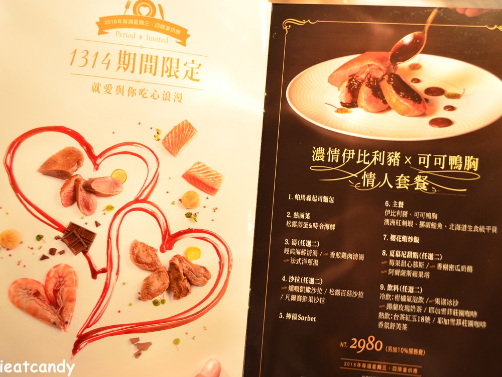 夏慕尼菜單(詳細:請點此):除了一般官網套餐,目前還有和牛+紅酒的熱銷活動,那油花真是令人垂涎三尺啊!當天一直猶豫要不要加點,但光是套餐內容就超有飽足感的。
